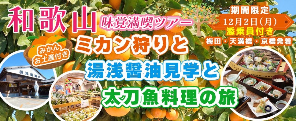 このツアーは、大阪の梅田、天満橋、京橋から発着し、和歌山の豊かな味覚を楽しむ日帰りバスツアーです。参加費はお一人様11,300円で、オンラインでの予約が開始されています。