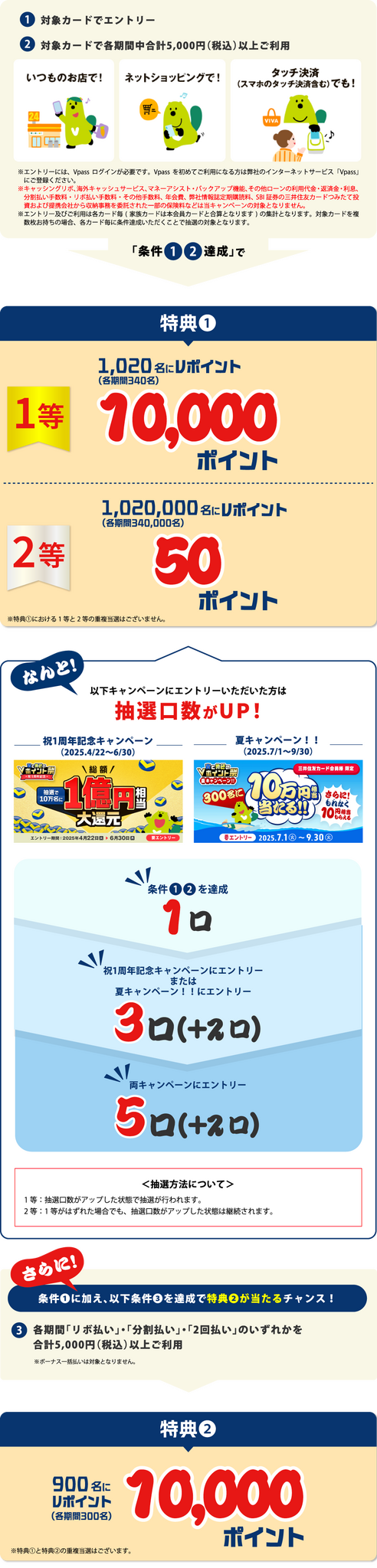 本キャンペーンは、期間中のカード利用額に応じて、抽選でVポイントの特典が付与されるものです。