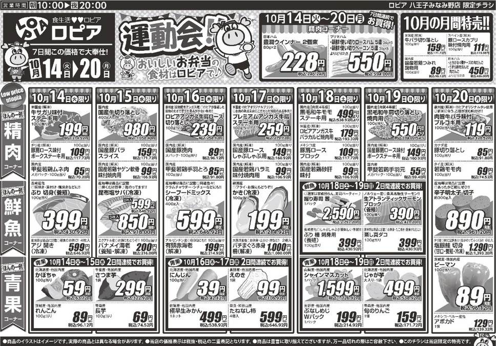 【ロピア八王子みなみ野店のチラシ】10月20日(月)までの日替わり特売情報