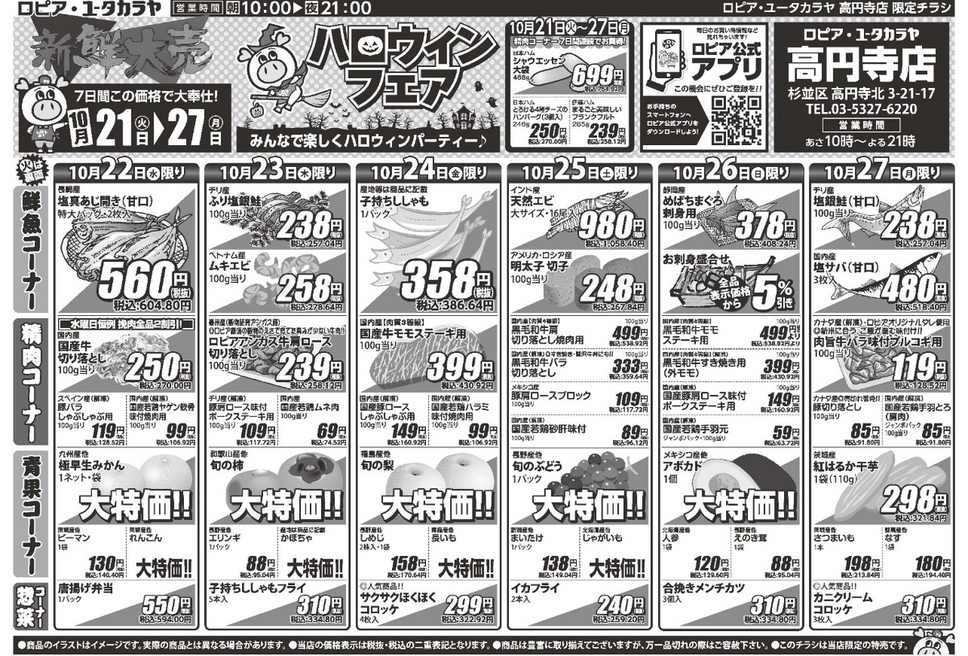 【ロピア ユータカラヤ高円寺店のチラシ】10月27日(月)までの日替わり特売情報