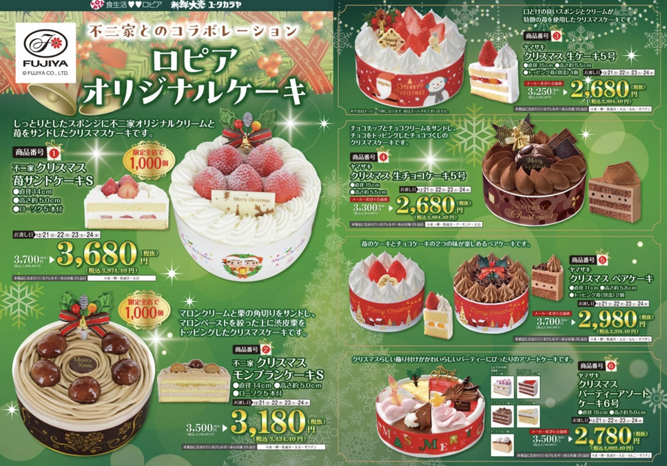 年に一度の特別な季節にぴったりな、ロピアと不二家のコラボレーションケーキが登場しました。しっとりとしたスポンジや上質なクリーム、たっぷりの苺やマロンを使った贅沢なケーキが揃い、クリスマスパーティーや家族との特別な時間を華やかに彩ってくれます。