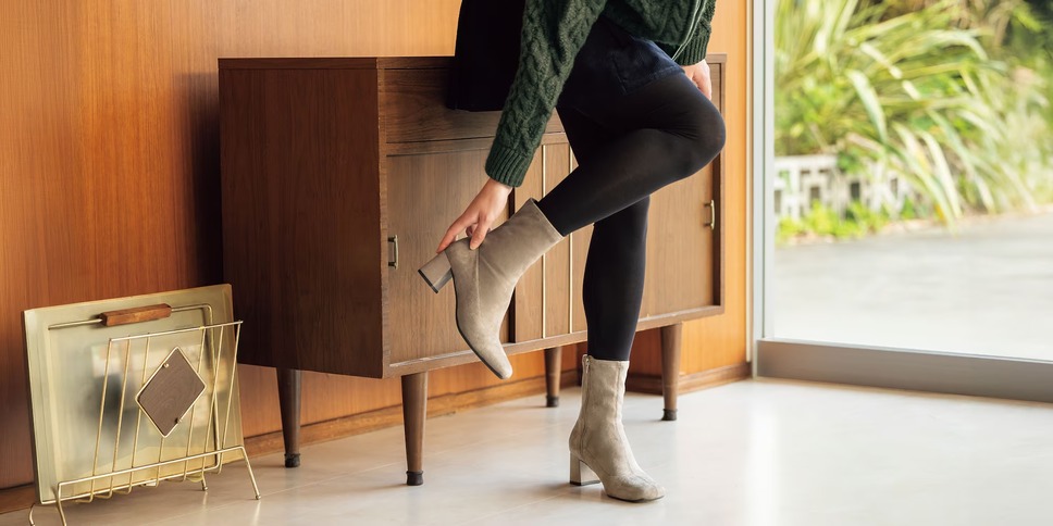 履き口が柔らかくフィット感抜群のストレッチブーツ。細めのシルエットとヒールの高さで脚長効果もあり、スカートにもパンツにも合わせやすい万能デザインです。軽量で長時間歩いても疲れにくいのも嬉しいポイント。