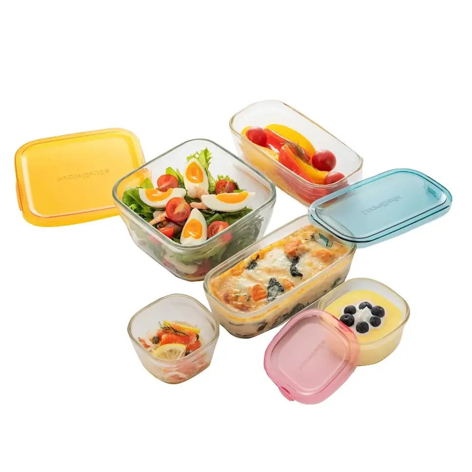 イワキ パック&レンジ 5点セットは、フタをしたまま電子レンジで加熱できるため、ラップいらずで経済的。酸や塩分に強く、長く清潔に使えるのもメリットです。シンプルなデザインでそのまま食卓に並べても違和感がなく、作り置きから盛り付けまで一つで完結できる万能アイテムです。
