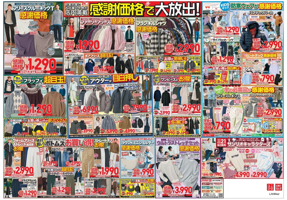 本記事では、ユニクロの最新チラシ情報【11月21日(金)~11月27日(木)】をご紹介しています。