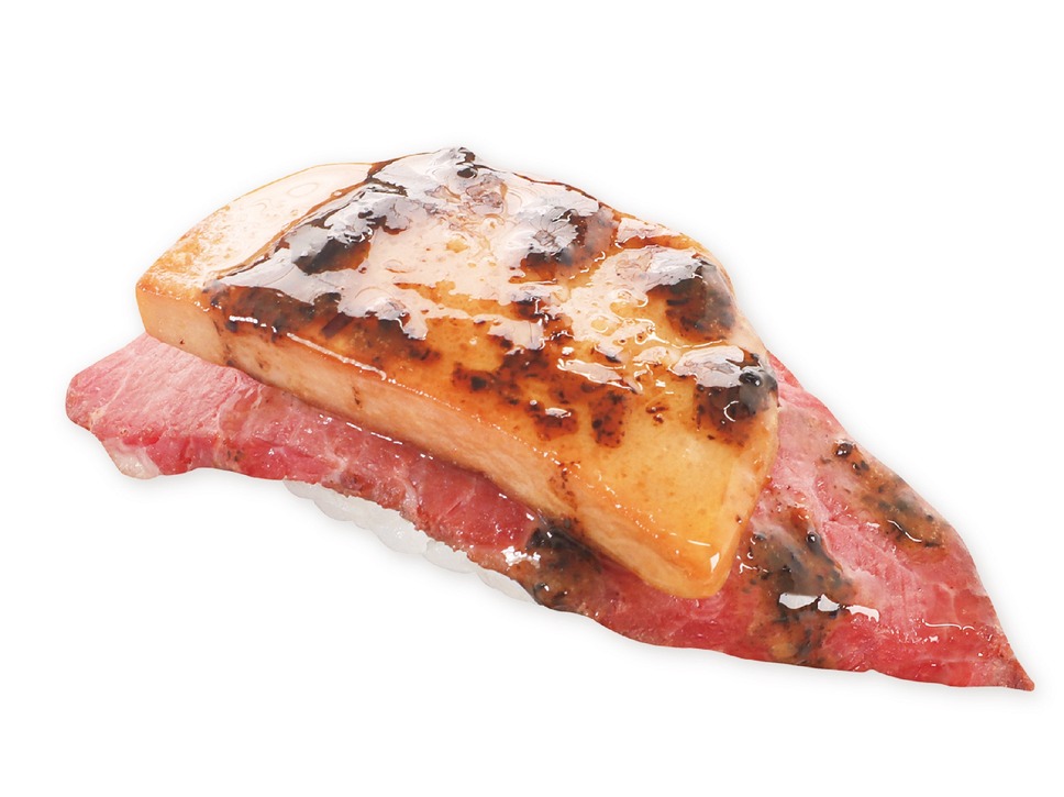 ミナミマグロの中トロにトリュフソースを合わせた「トリュフ中トロ(一貫)」(240円)や、低温調理した北海道牛にフォアグラ風パテを乗せた「北海道牛のロッシーニ風(一貫)」(380円)など、ユニークなメニューがラインナップ。このほか、若魚ならではのしっとりとした食感が特徴の「煮穴子握り」(110円)も提供されます。