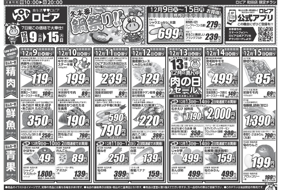 【ロピア町田店のチラシ】12月15日(月)までの日替わり特売情報