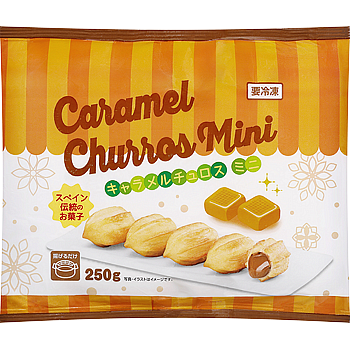 スペインから直輸入した伝統のお菓子「キャラメルチュロス ミニ」が、新登場。中には濃厚なキャラメルシロップがたっぷり。油で揚げるだけで、外はカリッ・中はとろりとした食感が楽しめます。
