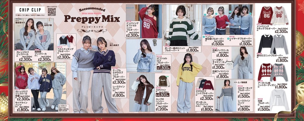 同じくCHIP CLIPから登場しているスタジャンは、カジュアルコーデの主役になる存在感が魅力。トレンド感のあるデザインながら、手に取りやすい価格帯で、普段スタジャンを着ない方でも挑戦しやすいのが特徴です。