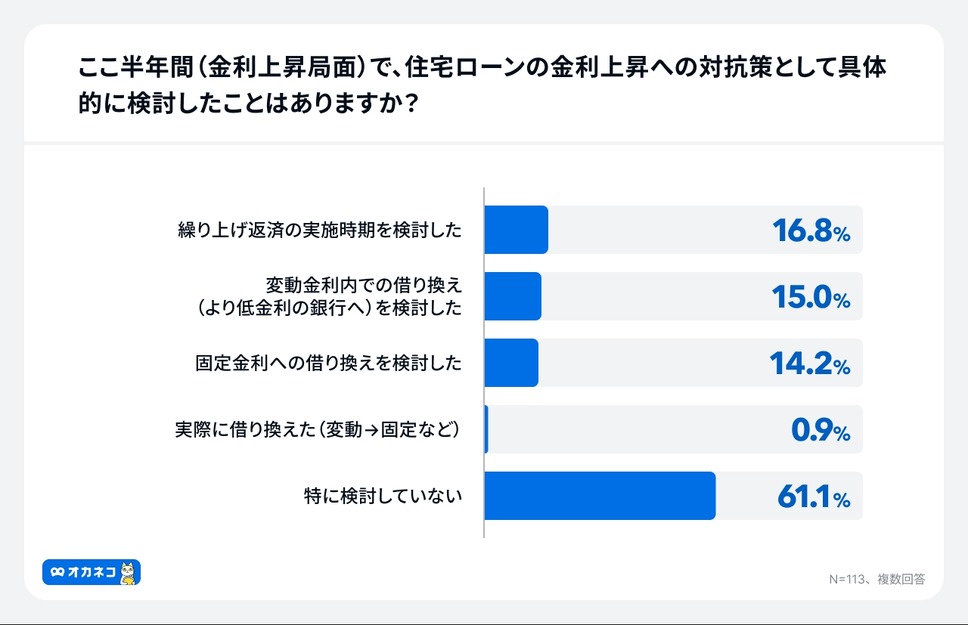 一方、ここ半年で金利上昇への対抗策を「特に検討していない」は61.1%でした。