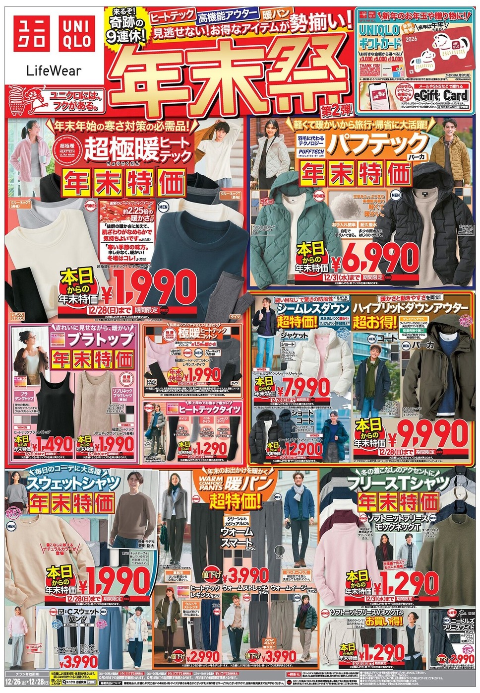 本記事では、ユニクロの最新チラシ情報【12月26日(金)~12月31日(水)】をご紹介します。