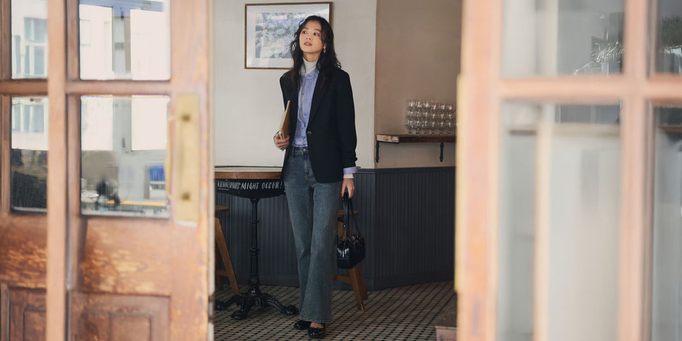 脚のラインを美しく見せてくれるスリムフレアシルエット。トップスを選ばず、カジュアルからきれいめまで幅広く対応できる万能デニムです。