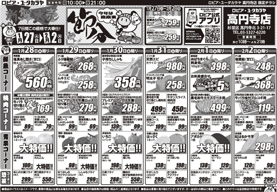 【ロピア ユータカラヤ高円寺店のチラシ】2月2日(月)までの日替わり特売情報