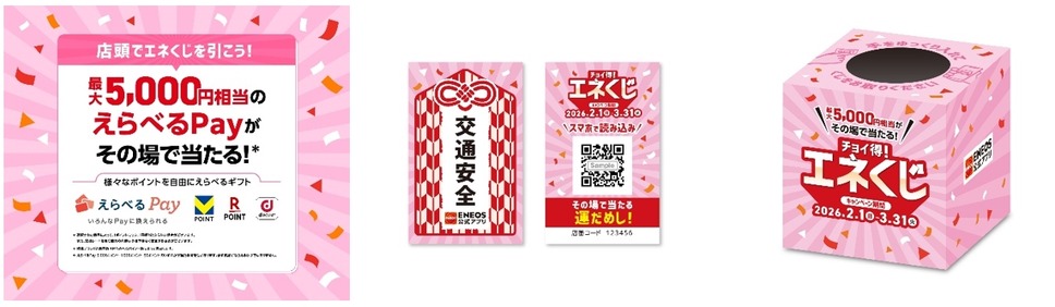 ENEOSは、2026年2月1日(日)~2026年3月31日(火)に「ENEOS公式アプリ マイカー登録キャンペーン 第3弾 チョイ得!エネくじ」を実施します。
