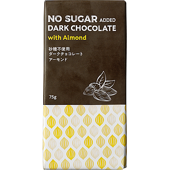 砂糖を使用せず、カカオ本来の風味を活かしたダークチョコレートに、香ばしいアーモンドを加えた商品です。甘さ控えめで、ほろ苦さとナッツのコクが楽しめるため、甘いお菓子が苦手な方にも向いています。