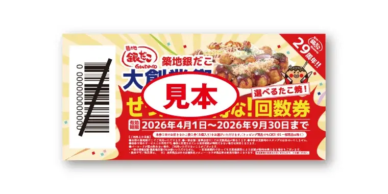ホットランドホールディングスは、築地銀だこの大創業祭に合わせ、2026年3月7日(土)から全国の築地銀だこ(一部店舗を除く)で『ぜったいお得な!回数券』を期間・数量限定で発売します。