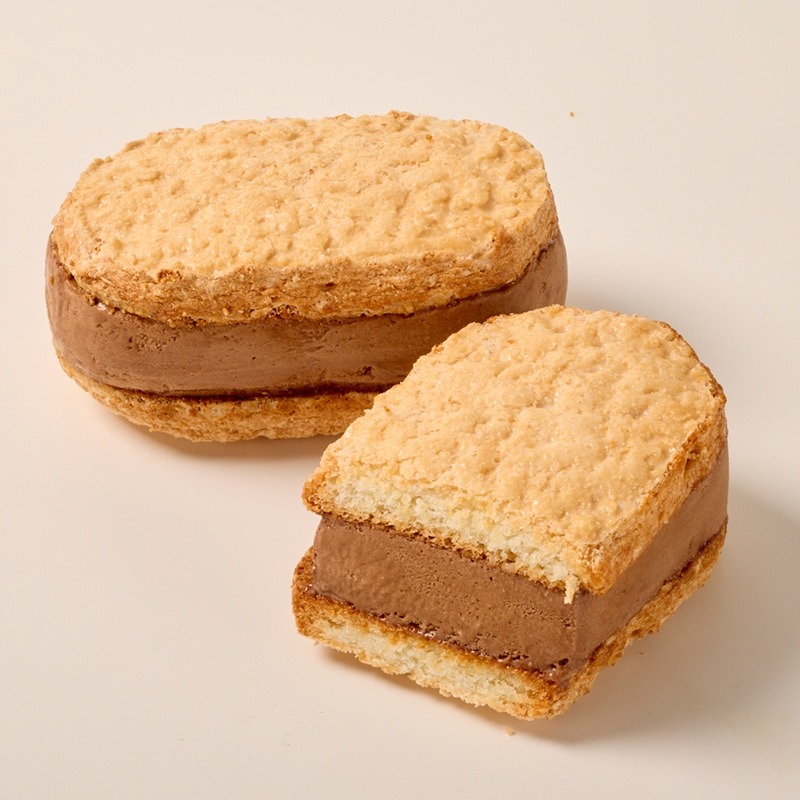 アーモンドの風味豊かなダックワーズ生地で、カカオのコクを感じるチョコアイスを挟んだ、ご褒美感のあるアイスです。香ばしさのある生地と、なめらかなアイスの組み合わせが心地よく、ひとくちごとに濃厚なショコラの味わいが広がります。
