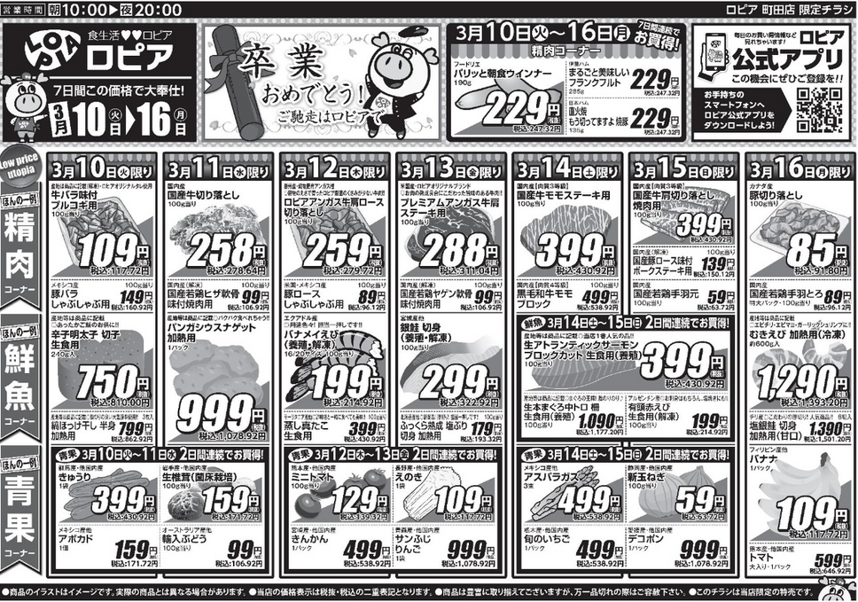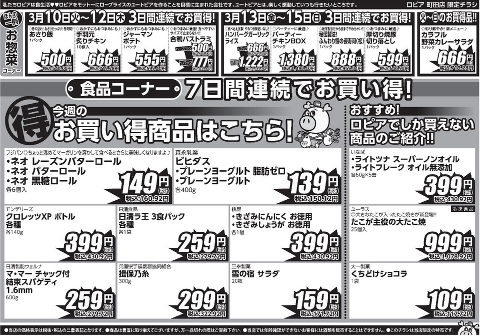 【ロピア町田店のチラシ】3月16日(月)までの日替わり特売情報