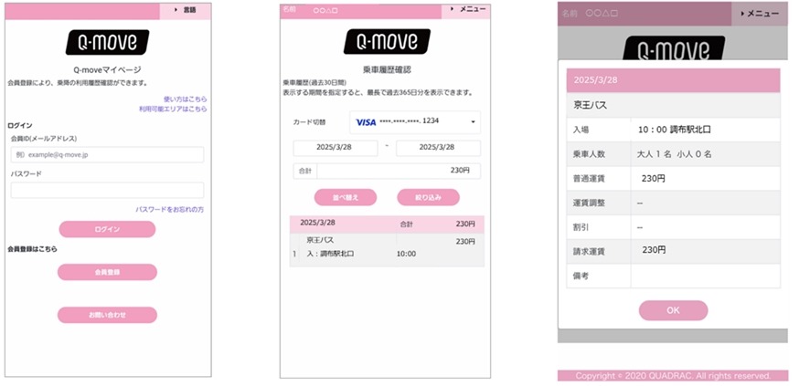 利用履歴はQUADRACの「Q-move」サイトで「マイページ」の会員登録が完了すると確認可能です。