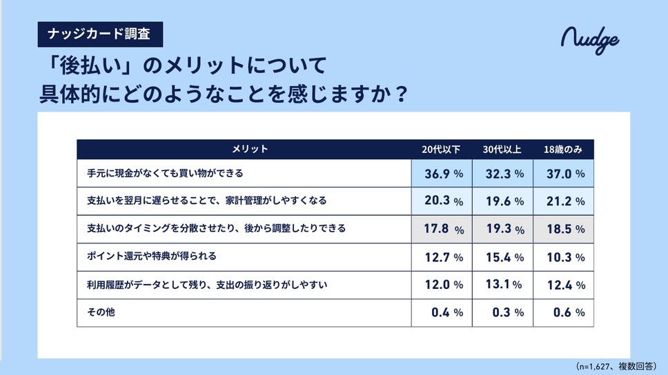 全世代では、約6割は後払いを「メリットの方が多い」と評価しています。