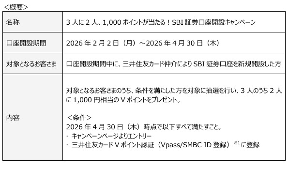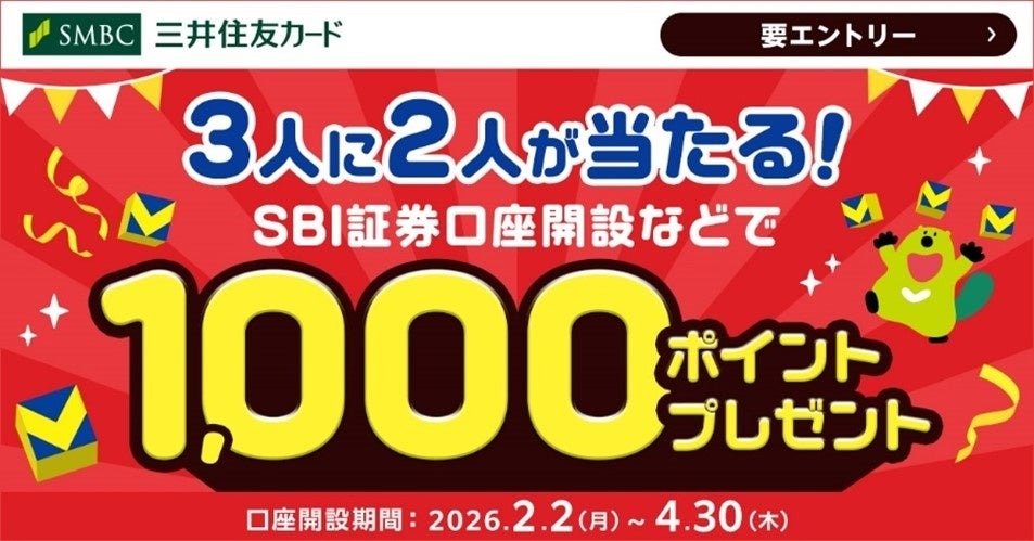 月間1,000億円突破を記念し、三井住友カード仲介によるSBI証券口座保有者を対象に各種キャンペーンが実施されます。