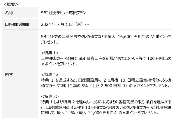 SBI証券デビュー応援プランとして最大16,600円相当のVポイントのプレゼント