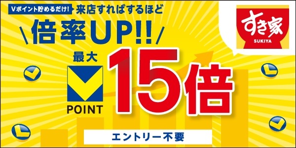 • Vポイントが最大15倍に!すき家・なか卯・はま寿司でお得企画