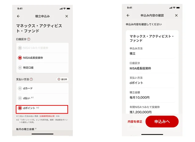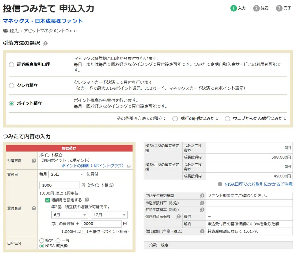 これにより、dポイントおよびマネックスポイントを使って、投資信託の積立が可能となります。