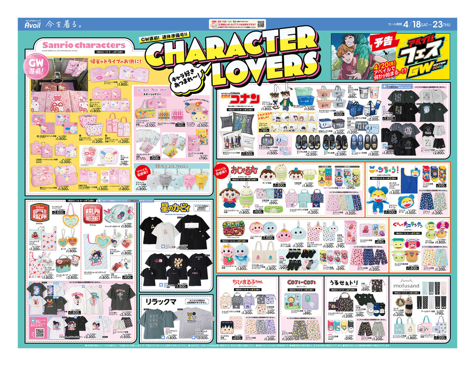 今週のアベイルは、キャラクターコラボからレディースファッションまで、幅広いジャンルで目を引くアイテムが揃いました。