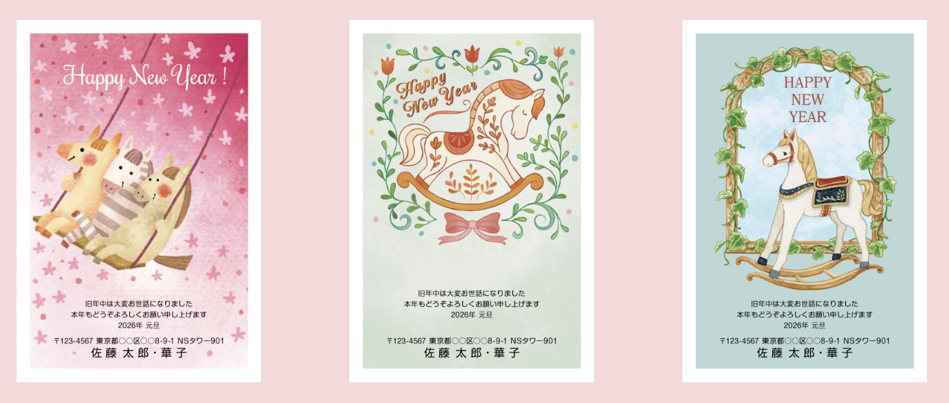馬年ということで、2026年のネットスクウェアの年賀状の中から個人的にいいなぁと思ったおしゃれ、おもしろ、ステキなデザインをいくつかピックアップしてみました。