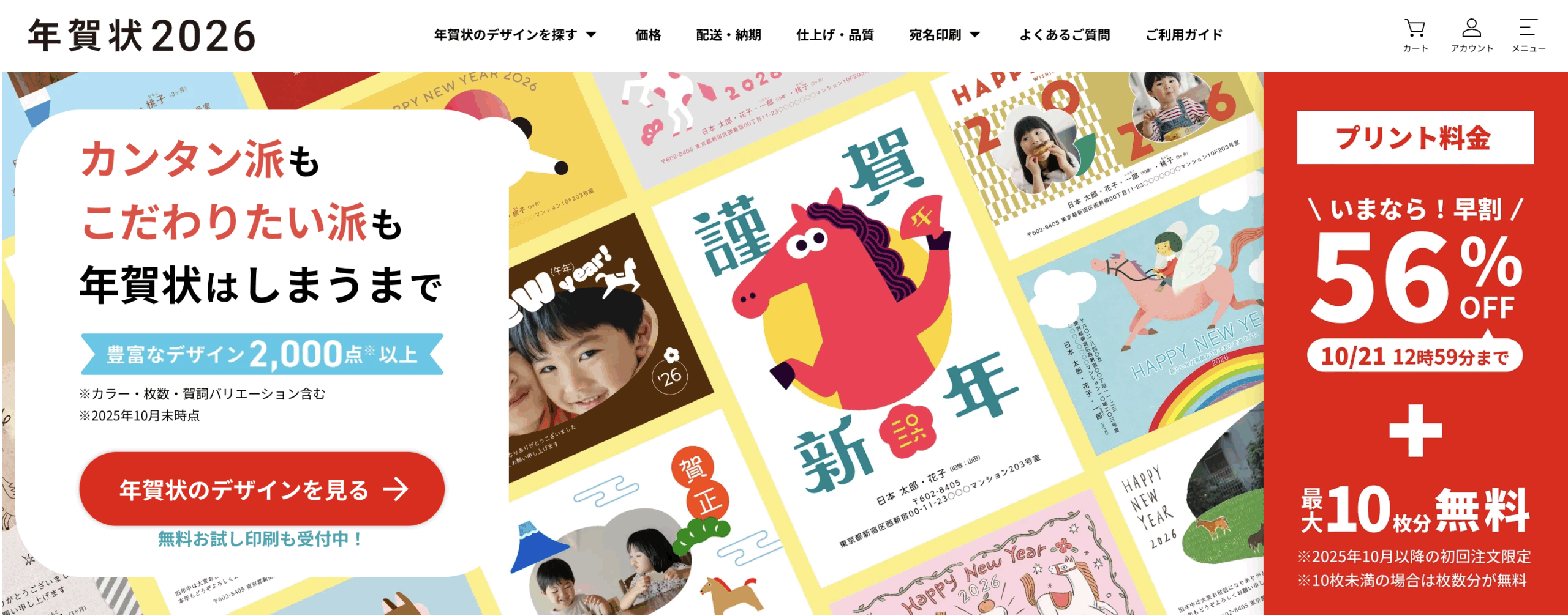 しまうまプリントの年賀状デザインは、2,000種類以上あります。